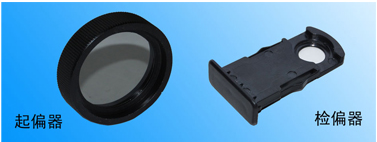 起偏器与检偏器通过旋转起偏器转盘,使得起偏器与检偏器正交达到偏光效果。