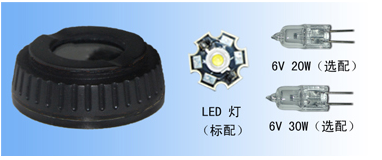 LED灯适用的聚光镜内置视场光栏可使用标配LED灯或者选配卤素灯照明方式。