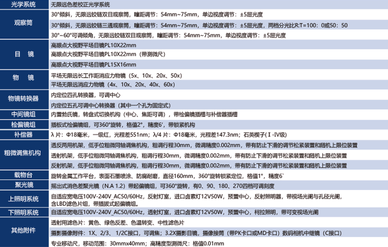 ■ 插拔式检偏镜组,可360°旋转,格值2°,精度6′。
