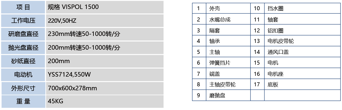 简要描述:金相试样磨抛机VISPOL 1500为双盘式机,可两人同时操作使用,适用于对金相试样进行预磨、研磨和抛光操作。本机通过变频器调速,可直接获得50~1000转/分钟之间的转速,从而使本机具有更加广泛的应用性。是用户用来制作金相试样必不可少的设备。本机带有冷却装置,可以在预磨时对试样进行冷却,以防止因试样过热而破坏金相组织。该机使用方便、*全*靠,是工厂、科研单位以及大专院校实验室的理x制样设备。