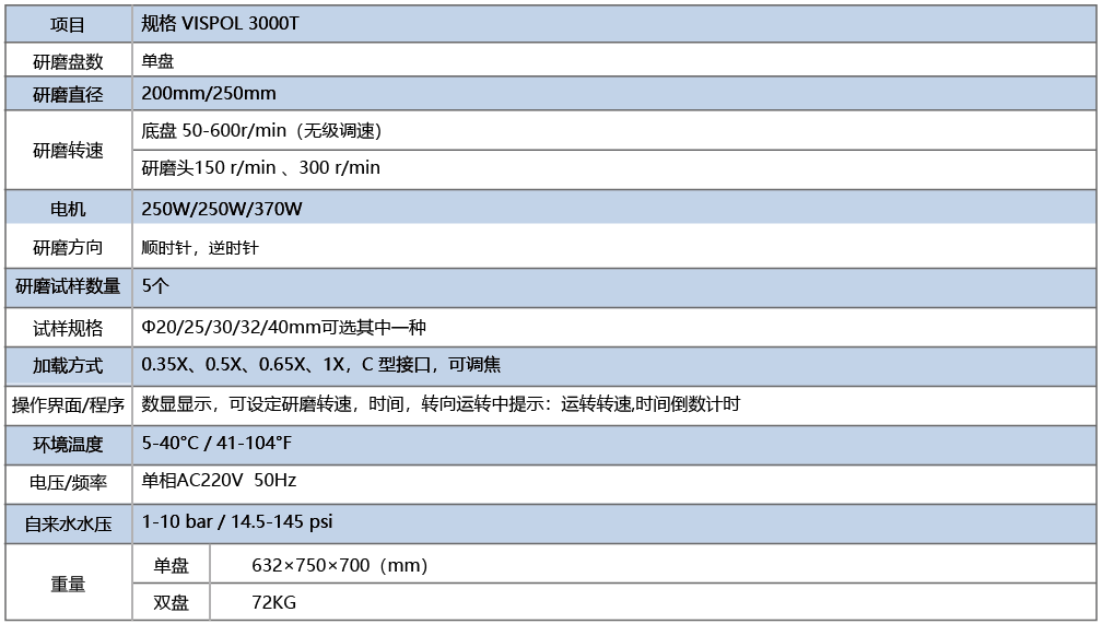 本机具备磨抛盘旋转方向可任意选择、磨抛盘可快速更换;多试样夹持器和气动单点加载;磨料自动配送(分液器可选配)等功能,还具有转动平稳、安*可*、噪音低及采用铸铝底座增加了磨抛的刚性等特点。