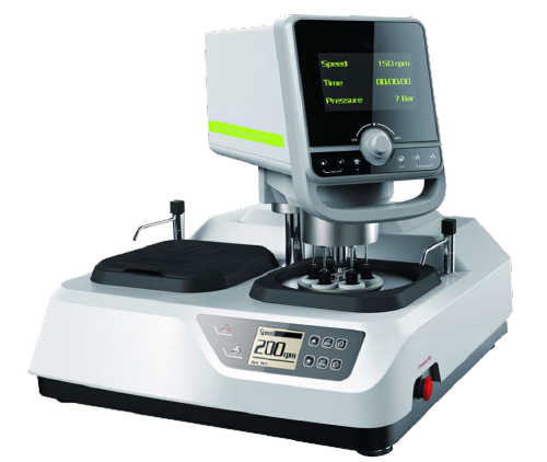 本机采用了先进的微处理器控制系统,使得磨抛盘、磨抛头的转速实现无级可调,制样压力、时间设定直观、便捷。操作者只需更换磨抛盘或者金相砂纸和抛光织物即可完成磨、抛工序的操作,从而使本机展现了更加广泛的应用性。