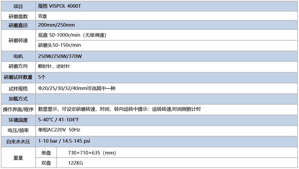 本机具备磨抛盘旋转方向可任意选择、磨抛盘可快速更换;多试样夹持器和气动单点加载;磨料自动配送(分液器可选配)等功能,还具有转动平稳、 噪音低及采用铸铝底座增加了磨抛的刚性等特点。